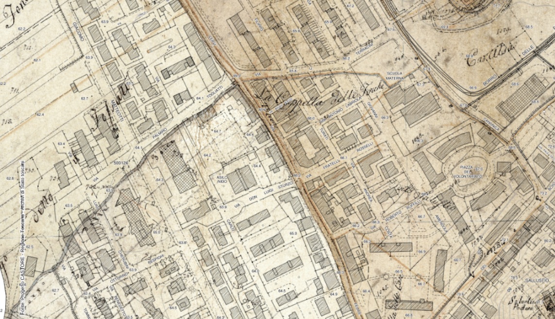 ·P· Boccaccio ·N· Ridolfi ·S· Fonte ·R· La Lama la linea che si parte dalle scalee della canonica