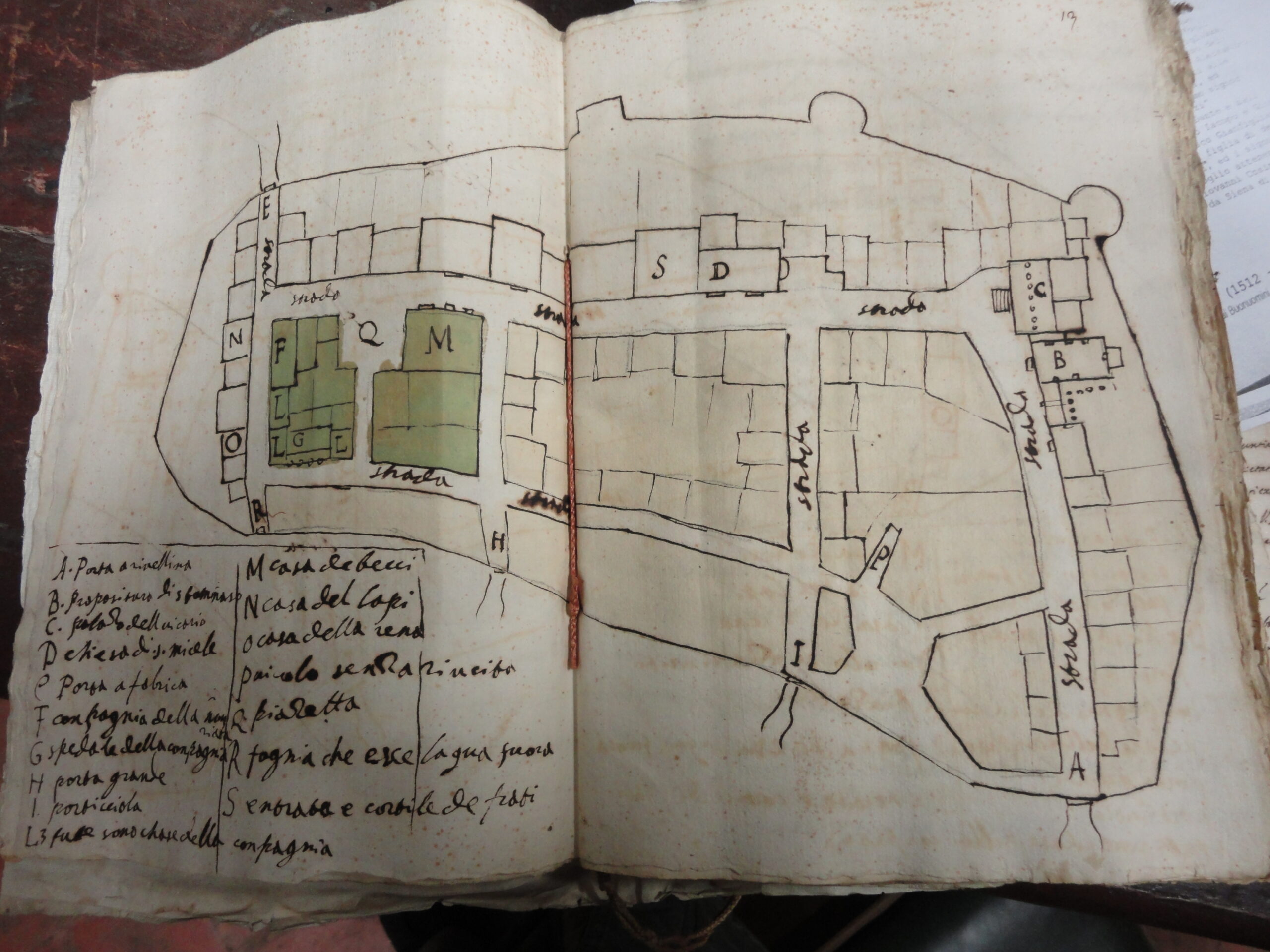 della Compagnia | M. Casa de Becci | N. Casa del Cav. Lapi | O. Casa della Rena | P.